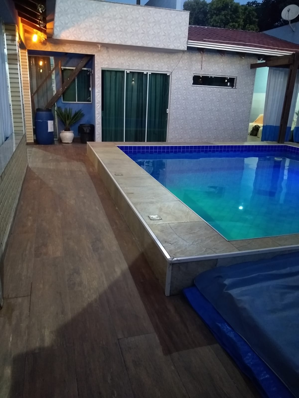 Possui piscina adulta sala de TV , o imóvel conta com churrasqueira, mesa de pimbolim.